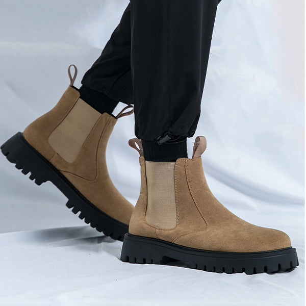 These men's stylish ankle boots, epitomize contemporary fashion with their sleek design and exemplary craftsmanship. Attention to detail is evident in every stitch, and the premium material ensures both durability and comfort. Whether you're dressing up for a formal occasion or adding a dash of elegance to casual wear, these boots are a perfect choice.