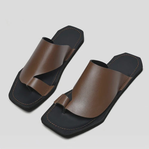 MEN'S SUMMER SOILD COLOR LEATHER SLIPPER SANDLES MUA0378G7I