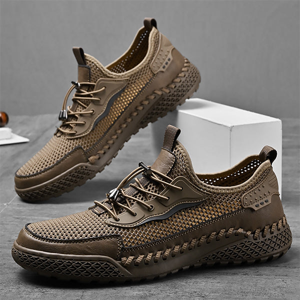 The MEN'S LIGHTWEIGHT BREATHABLE ATHLETIC SHOES are specifically designed for active individuals who seek both comfort and durability. These shoes feature a sleek and modern design, making them perfect for various athletic activities. Their unique construction promotes ventilation and a lightweight feel, allowing you to perform your best every time.