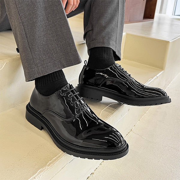 These polished black leather dress shoes are versatile, pairing seamlessly with a wide range of formal and semi-formal attire. Wear them with a tailored suit for weddings or corporate meetings, or match them with dress trousers and a crisp shirt for an upscale evening look. The timeless black shade ensures compatibility with various color palettes, from classic black and navy to modern greys and earth tones.